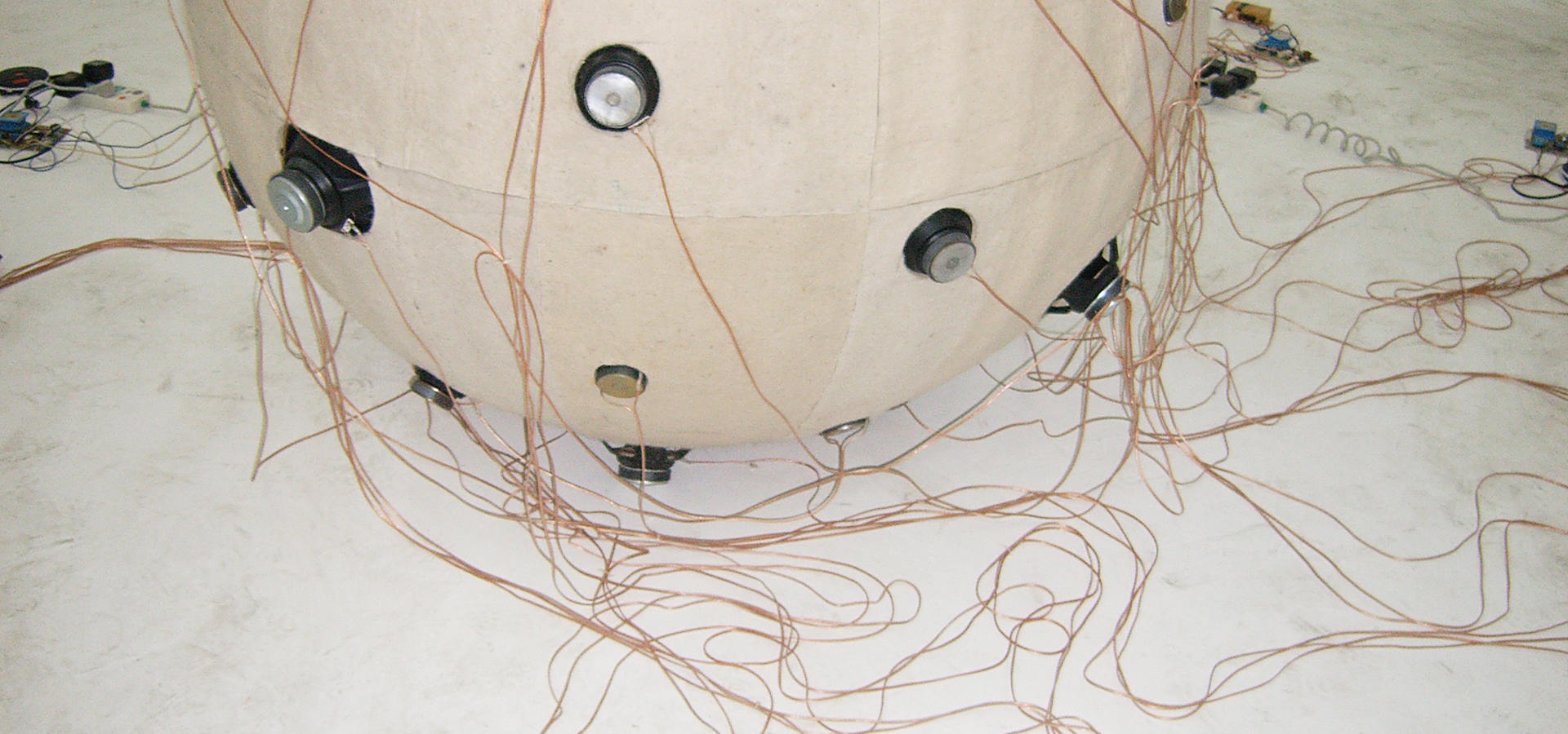 在甘肃临夏回族自治洲临夏市这个城市一天中的不同地点、不同时间,艺术家录制了自己所能听到的声音,然后在被毛毡包裹的球体中密封播放这些声音。