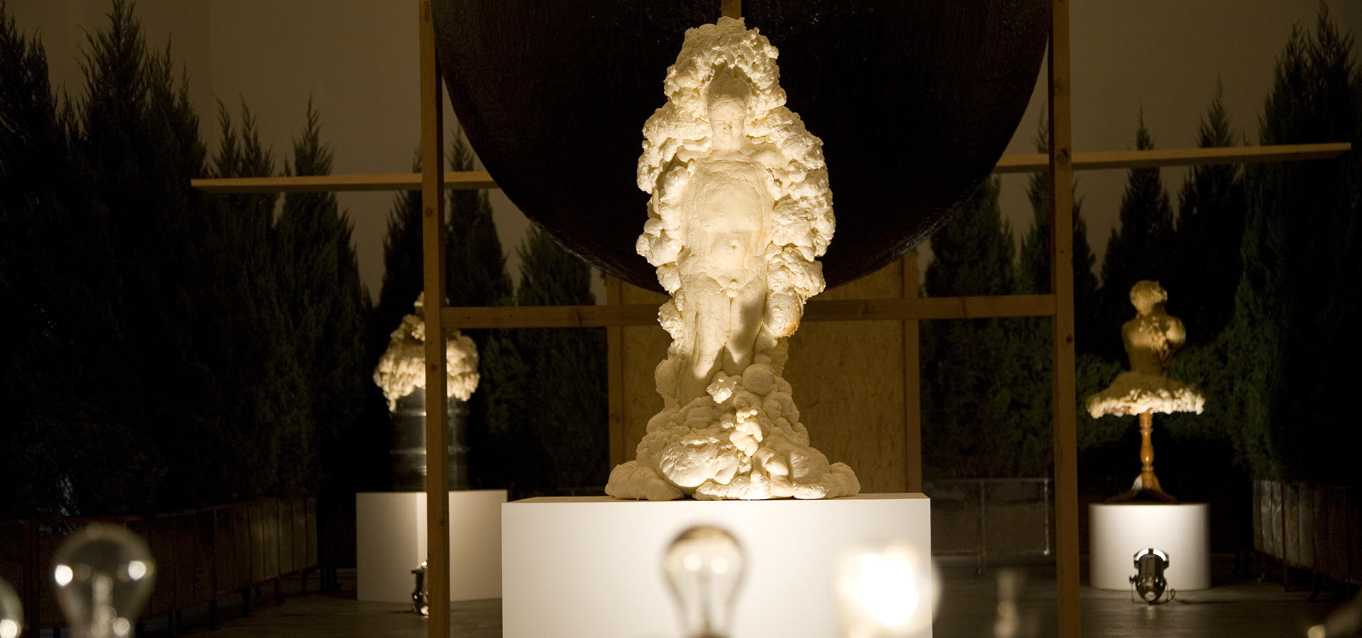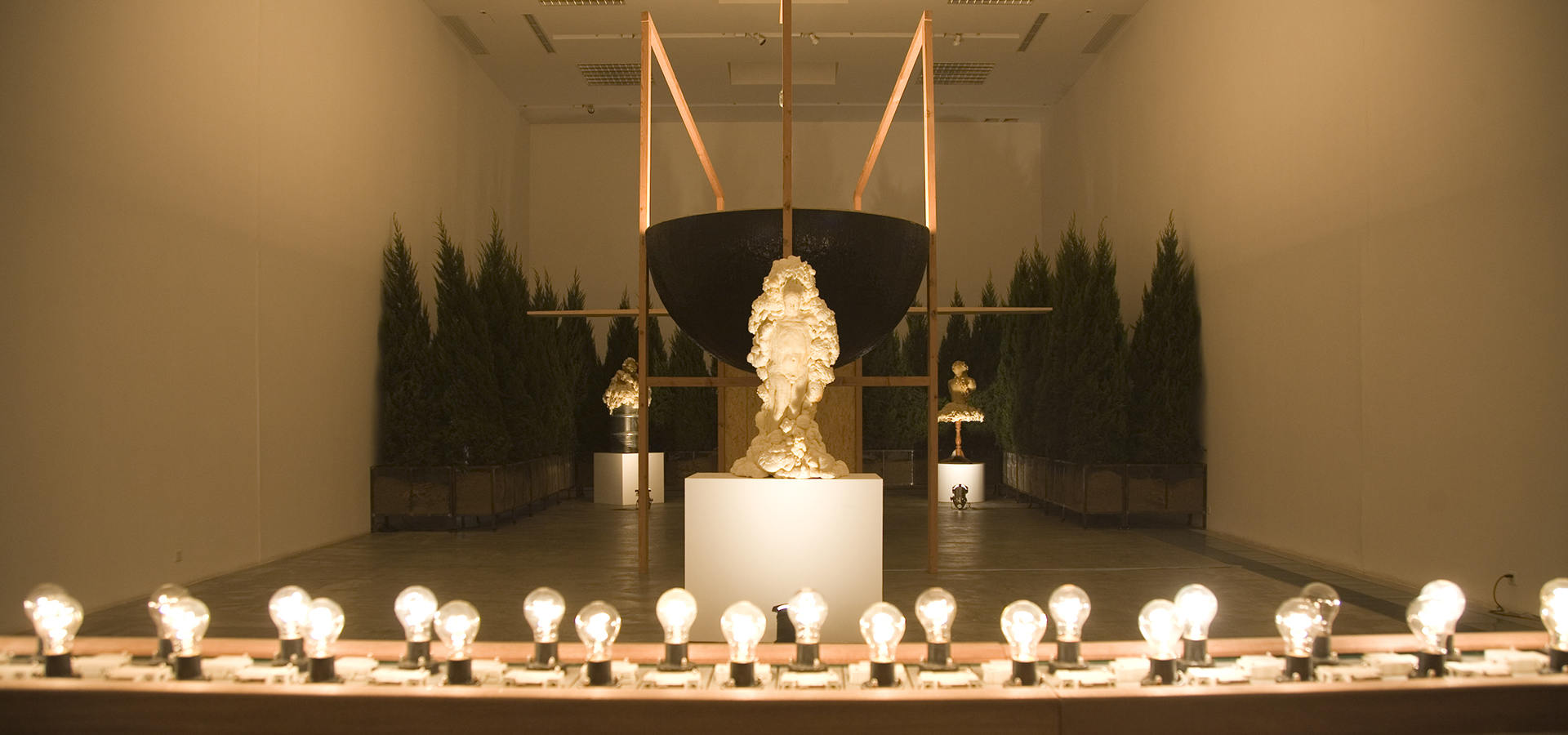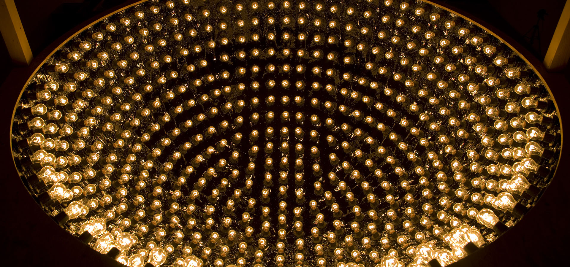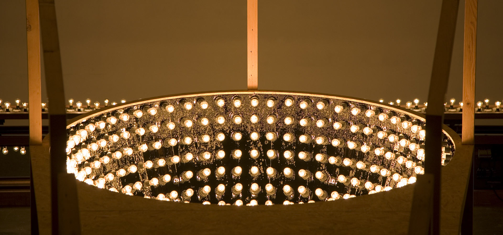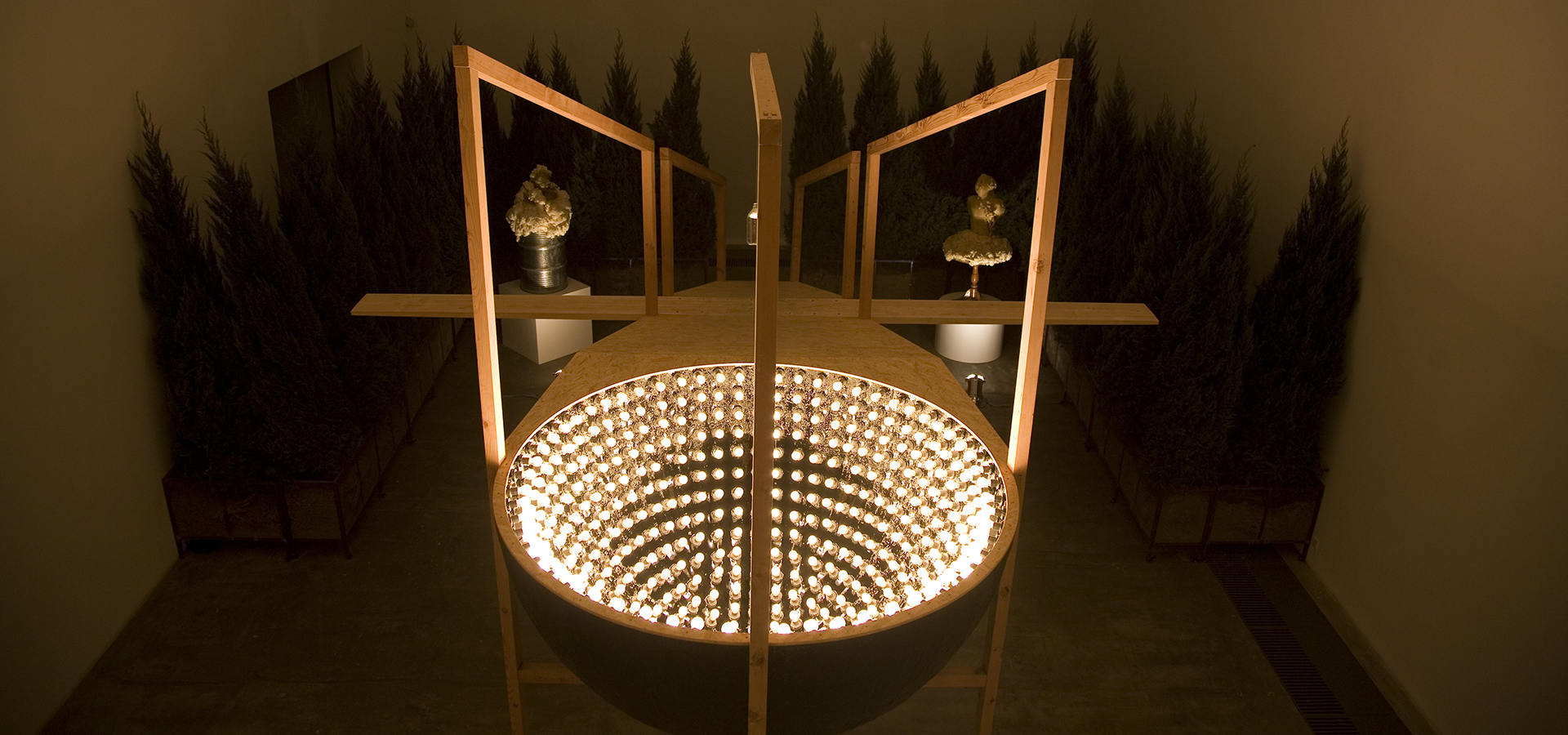 另一件长8米的机械传送装置。其上安插的上百个灯泡依序进退,等待它们的却是两端无情的铁锤。它们与那高高在上的灯泡们遥相呼应,并以自我牺牲平复躁动与贪婪。在此,破坏是达到平衡的方式。艺术家似乎在提醒我们,规则与秩序的维护,权力与利益的享有,是否也应遵从一种破立之道?
