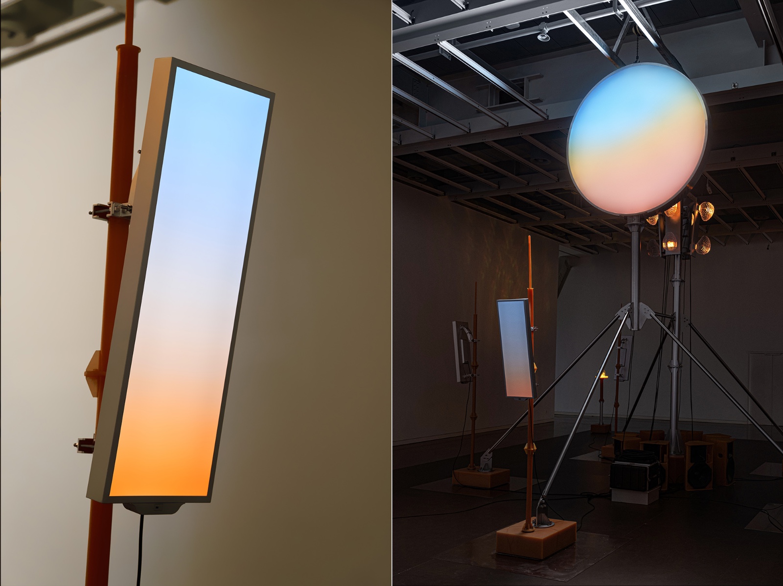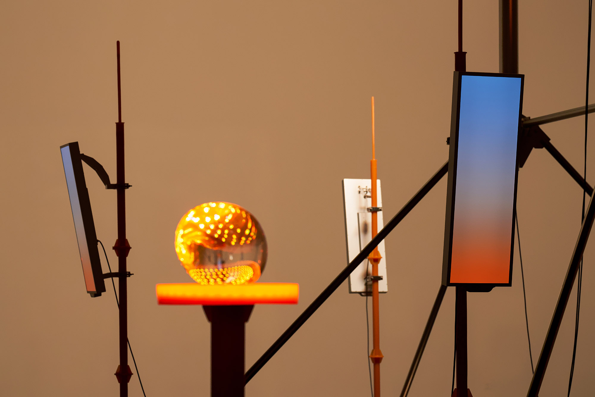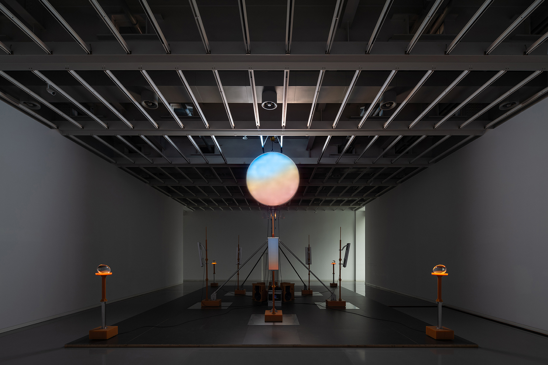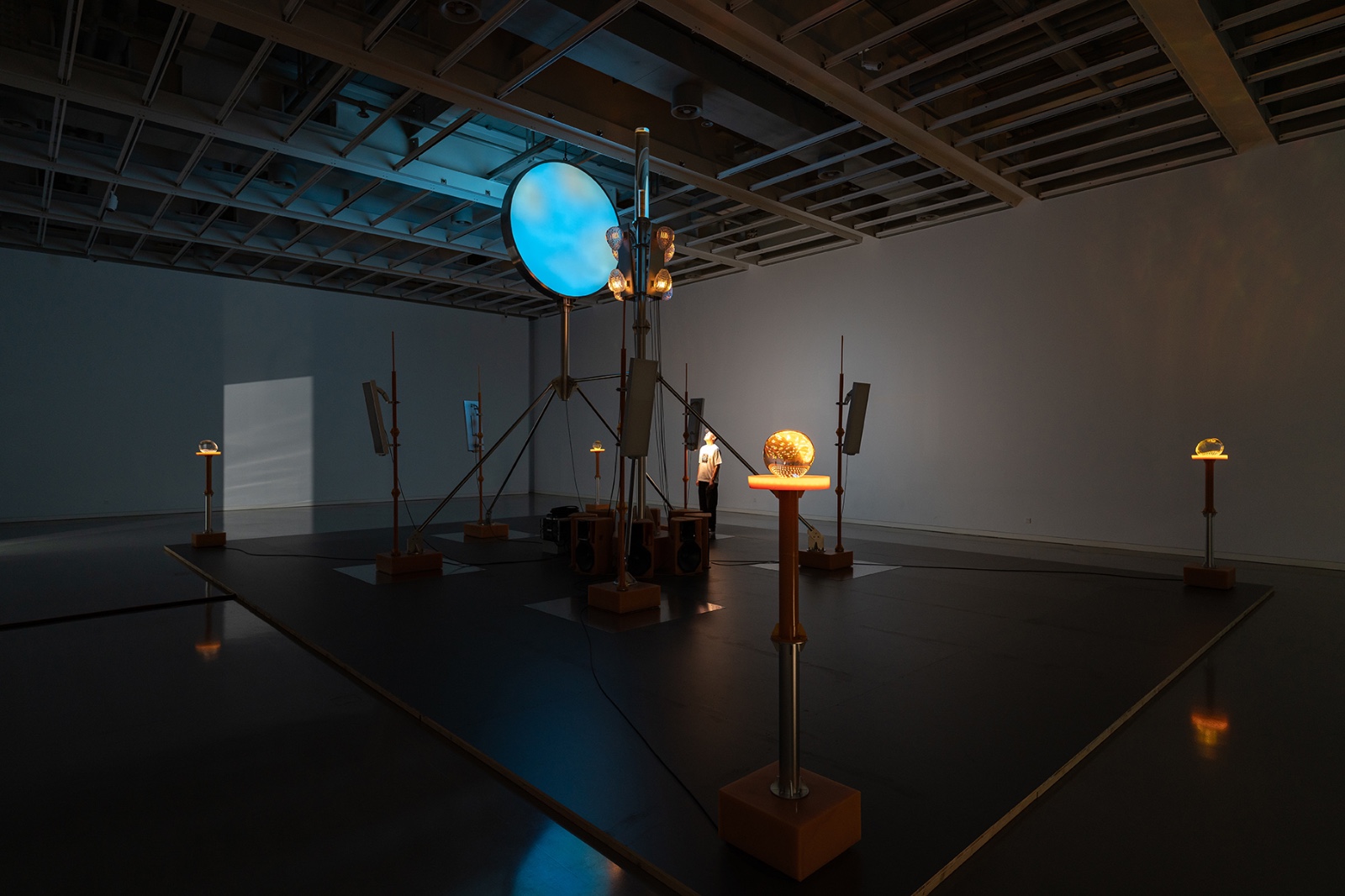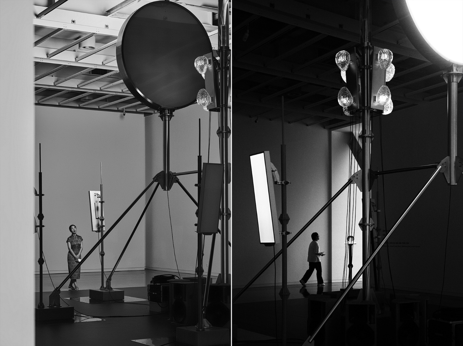 Commissioned by OPPLE, Zhang Ding created a large light and sound installation using software defined lighting technique. Reminiscent of a stage, the work gathers various elements related to technology and modern society, such as OPPLE's new lighting technology, cellular tower, solar tower, etc., all presented together with crystal glass sculptures and sound.