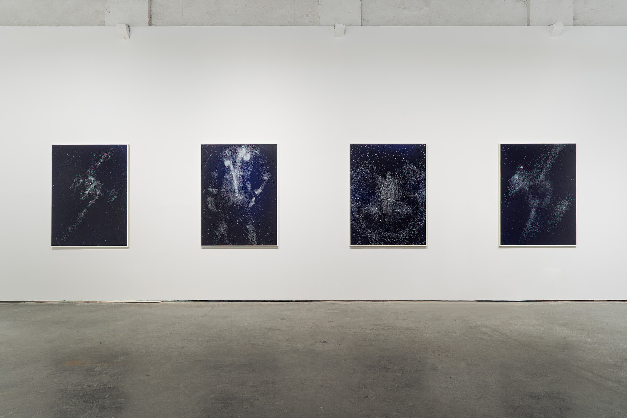 Skulls and skeletons, whether human or animal, appeared for the first time in Zhang Ding’s practice in 2019 and became omnipresent during the following years as the world entered the pandemic crisis. Disaggregated into a multitude of dots using 3D technique, as data or a constellation of flowing particles above a dark blue or black background, the skeletons - dispossessed of their morbidness and rigid symbol of death - take a universal anthropomorphic form immersed into an infinite space.