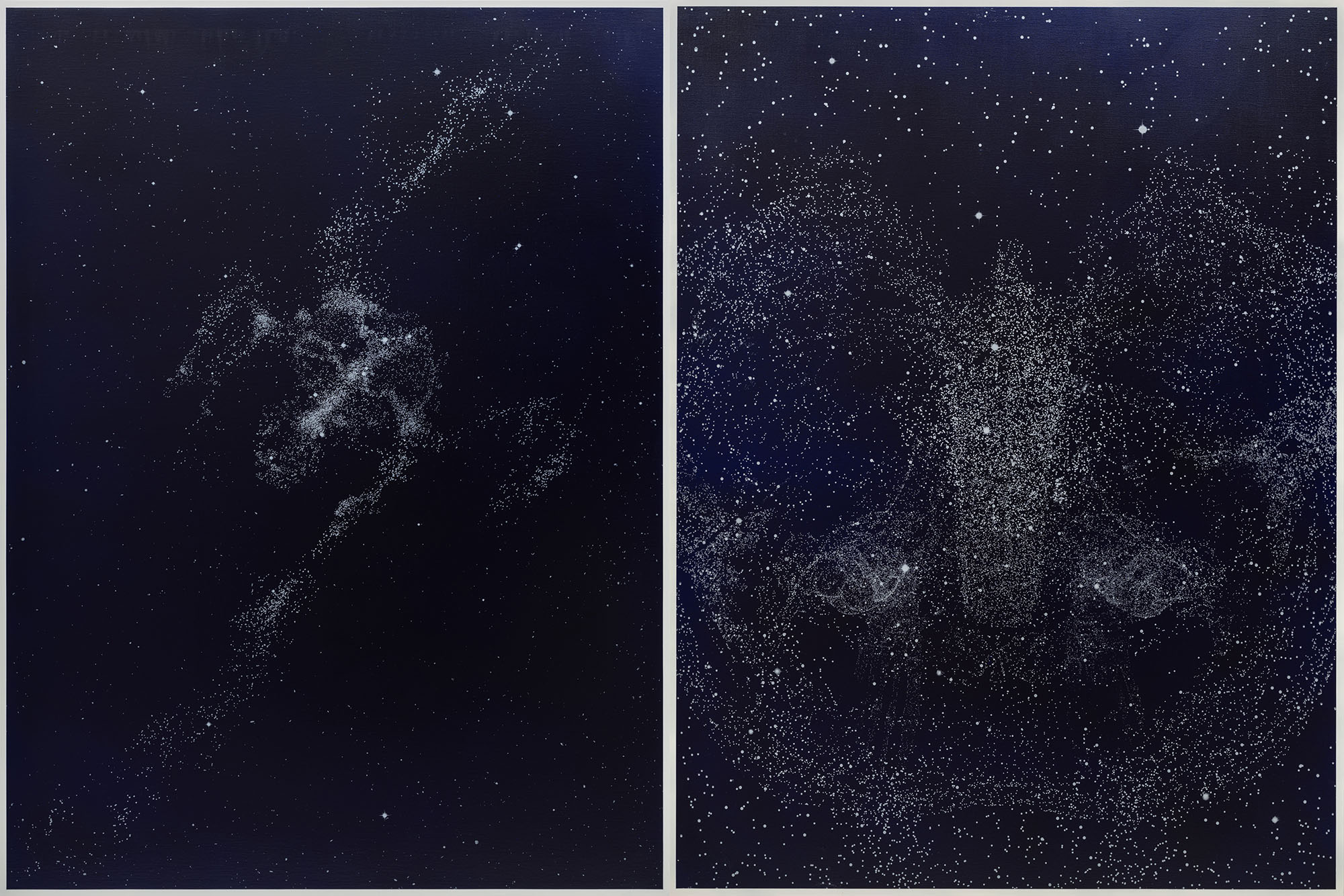 Presented series include “Green Skull”, “Endless”, “Interstellar”, “Observation Point”, “Untitled-2024” and “Vortex”. Among presented works, several pieces revisit established topics, from sacred to cultural, solely revealed by the postures of the depicted subjects.